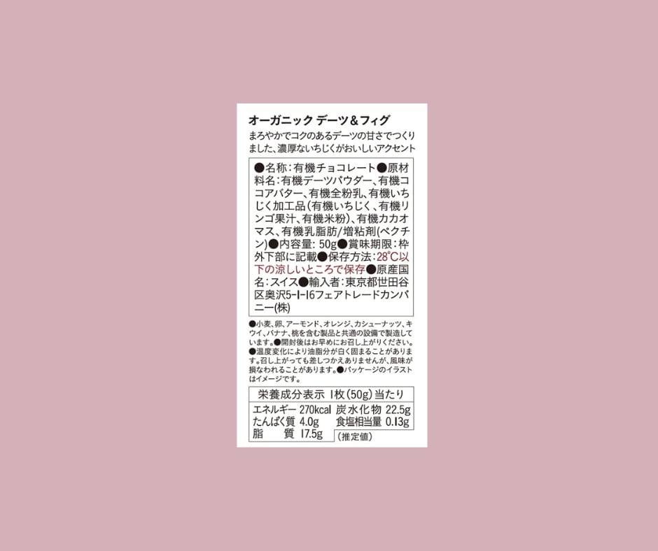 【冬季限定】People Tree (ピープルツリー). フェアトレードチョコ・オーガニック デーツ&フィグ 50g
