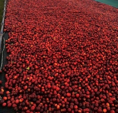 ハニープロセスは収穫したコーヒーの実の果肉と外皮を取り除いた後、粘液質(ミューシレージ)を残したまま乾燥させる精選方法で、残す粘液質の量で「ホワイト」「イエロー」「レッド」「ブラック」と区別され、特にブラックハニーは最も乾燥時間がかかり、甘みとコクが強くなります。